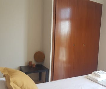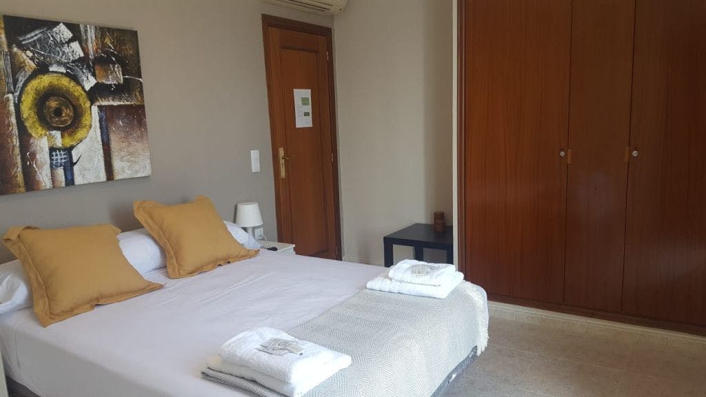 Bonita habitación con todas las comodidades: TV, baño privado, aire acondicionado, WiFi, armario empotrado y además una terraza con vistas a la piscina, ideal para relajarse y disfrutar tanto del interior como del exterior.