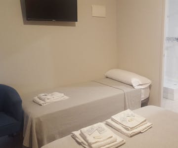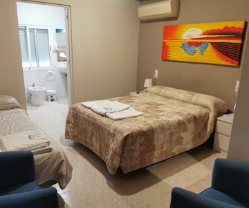Ideal room for three people (double bed and an extra bed of 90). It has all the amenities: TV, private bathroom, air conditioning, WiFi, built-in wardrobe.